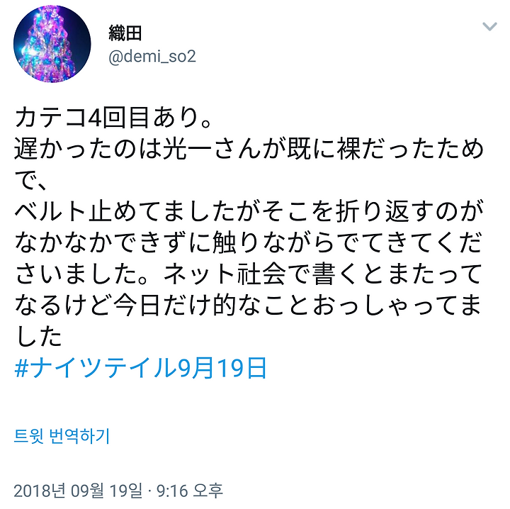 [나이츠 테일 웨게 9/19] 코이치상은 무대 소매에서 이미 옷을 벗고 상반신 알몸이었다고 하며 끈질긴 손박자에 황급히 옷을 입고 나와서 준 듯 상의의 벨트를 채우면서 토크. 요시오상이 "그대로(알몸)여도 좋았을텐데..!" 라고 해서 웃는ㅎㅎ