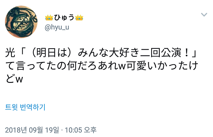 光「(明日は)みんな大好き二回公演!」て言ってたの何だろあれw可愛いかったけどw