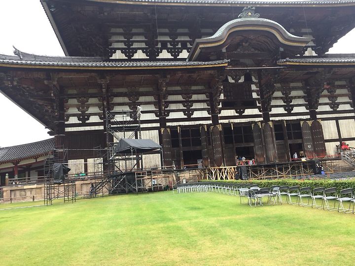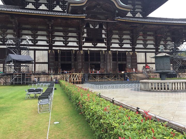 UNESCO 세계 유산 "고도 나라의 문화재" 등록 20주년 기념 "동대사 가부키"은 드디어 내일, 대불전 앞에서 개최. 나카무라 칸쿠로·나카무라 시치노스케의 "렌지시 후지무스메"가 대불께 봉납됩니다. 당일권은 13시부터 대불전 중문 앞에서 판매