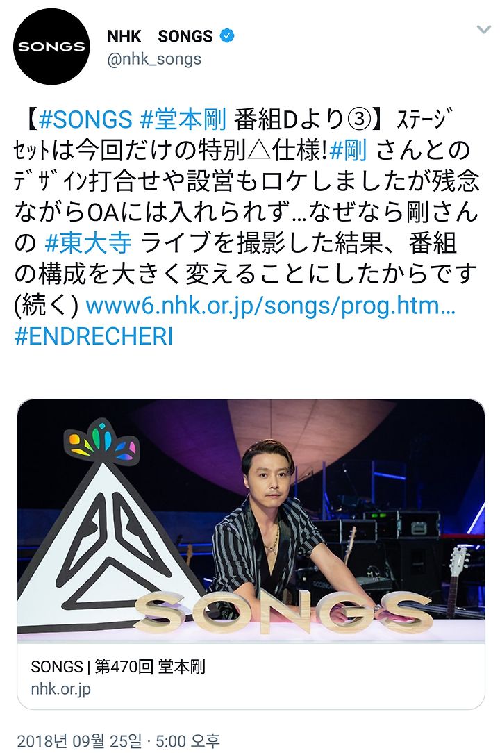[도모토 쯔요시] 9/25 NHK SONGS 트윗