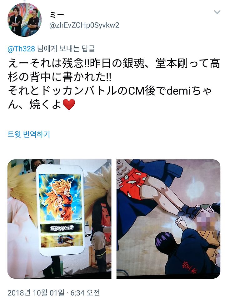 えーそれは残念‼昨日の銀魂、堂本剛って高杉の背中に書かれた‼