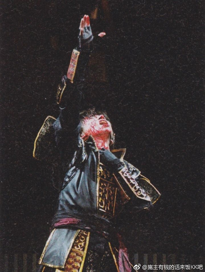 『Endless SHOCK』1막의 라스트. 15분 이상의 살진 직후에 실제로 체력의 극한 상태. 도모토는 이 피투성이 상태로 스태프에게 안기어 대기실로 돌아간다.