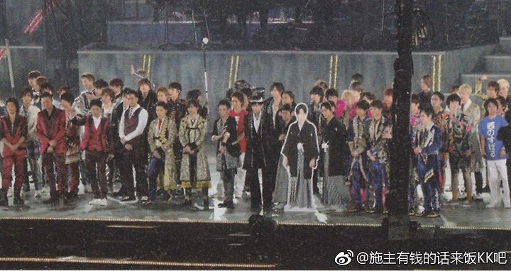 사무소 탤런트들이 대인원으로 모이는 카운트다운 콘서트. 사진은 2015년의 것. 수십명의 탤런트가 메인스테이지에 모이면 회장인 도쿄돔이 작게 느껴진다. 사무소에는 지금 약 90명의 데뷔팀과 약 300명의 Jr.가 있다.