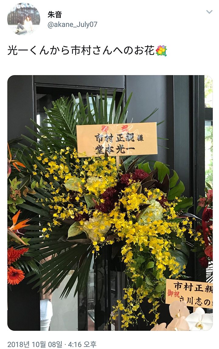 光一くんから市村さんへのお花💐 https://t.co/L0unHdJzuy