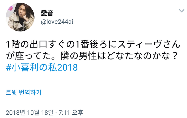 1층 출구 바로 뒤에 스티브씨가 앉아 있었다. 옆의 남성은 누구일까?