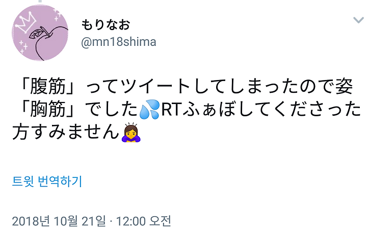 (낮에) "복근"이라고 트윗해 버렸습니다만 "흉근"이었습니다 💦