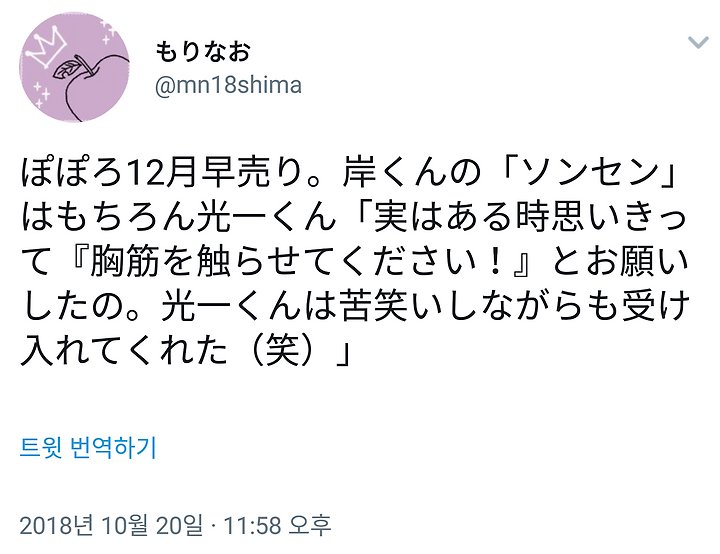 12월 조기판매 키시군의 "선생"은 물론 코이치군. "실은 언젠가 맘먹고 <흉근 만지게 해주세요!> 라고 부탁했어. 코이치군은 쓴웃으면서도 받아 주었어ㅎㅎ"