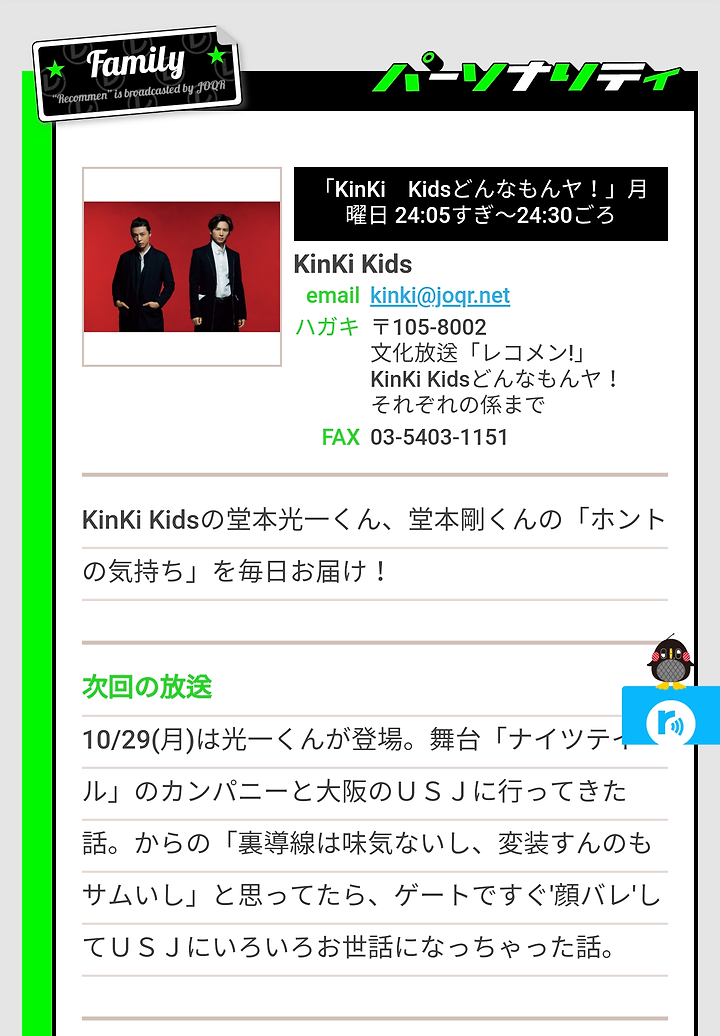 10/29(월)은 코이치군이 등장. 무대 "나이츠 테일"의 컴퍼니와 오사카의 USJ에 다녀온 이야기. 에서부터의 "뒷길은 재미가 없고, 변장하는 것도 좀 깨고" 라고 생각했더니 게이트에서 바로 얼굴 들켜서 USJ에서 여러 가지 신세를 져버렸다는 이야기.