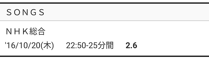 [KinKi Kids] 2016~2018 SONGS 시청률