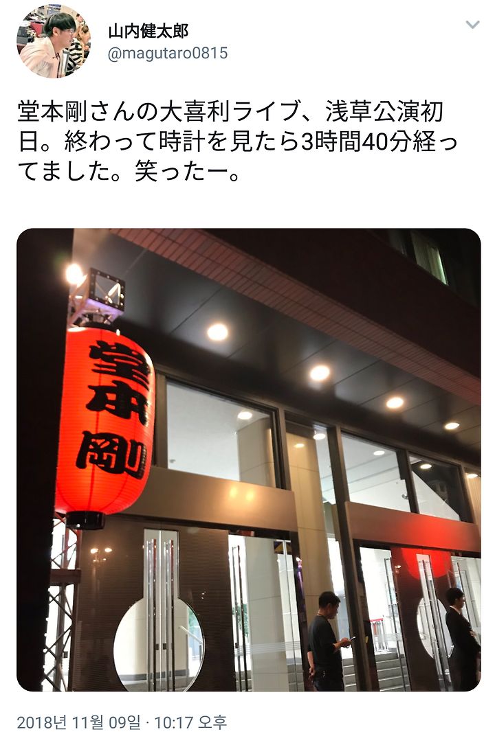 堂本剛さんの大喜利ライブ、浅草公演初日。終わって時計を見たら3時間40分経ってました。笑ったー。 https://t.co/un8fd6ta7R