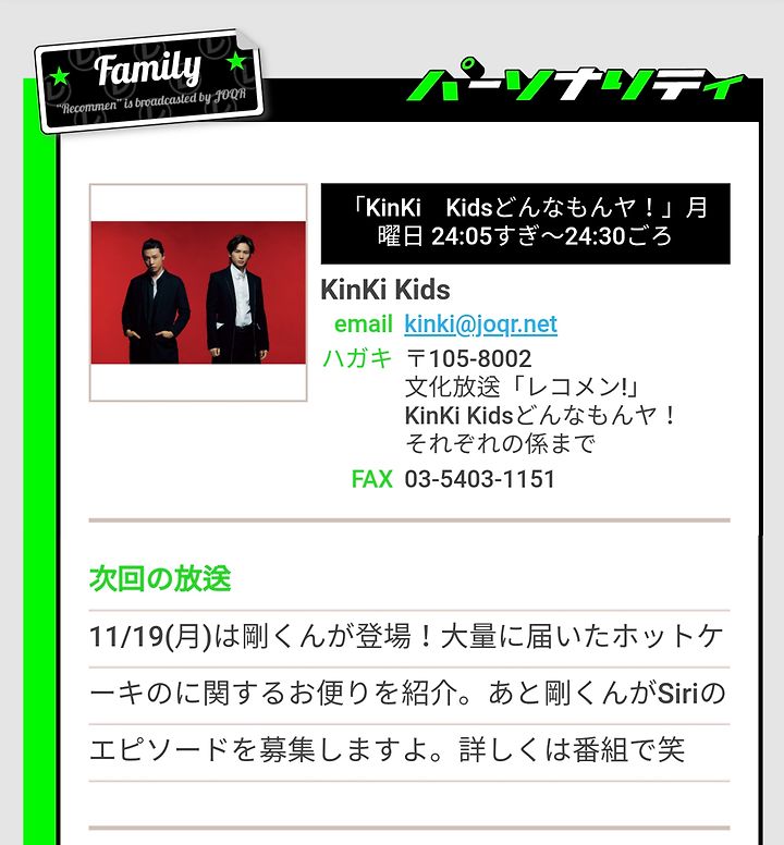 11/19(月)は剛くんが登場!大量に届いたホットケーキのに関するお便りを紹介。あと剛くんがSiriのエピソードを募集しますよ。詳しくは番組で笑