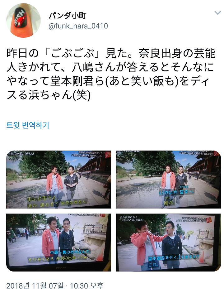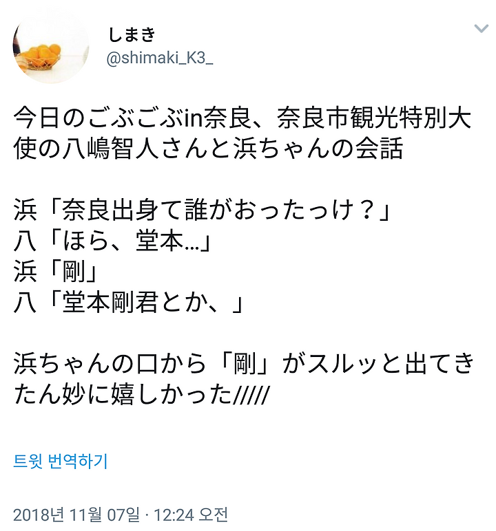 昨日の「ごぶごぶ」見た。奈良出身の芸能人きかれて、八嶋さんが答えるとそんなにやなって堂本剛君ら(あと笑い飯も)をディスる浜ちゃん(笑) https://t.co/DZFXbj3QVt