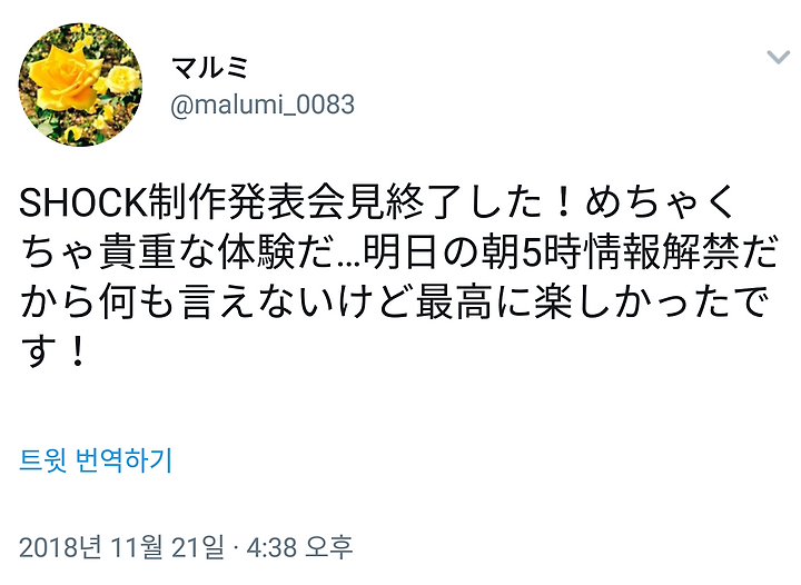 SHOCK 제작발표 회견이 종료되었다! 엄청 귀중한 체험이다...내일 아침 5시 정보해금이라 아무 말도 못하겠지만 최고로 즐거웠어요!