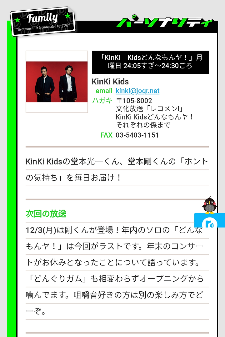 剛 244 [도모토 쯔요시] 12/3 돈나몬야 담당 자오딩 2018. 11. 30. 23:54 12/3은 쯔요시군이 등장! 연내 솔로의 돈나몬야는 이번이 라스트입니다. 연말 콘서트를 쉬게 된 것에 대해서 말하고 있습니거. 동구리 껌고 변함없이 오프닝부터 씹고 있습니다. 저작음을 좋아하는 분은 다른 즐기는 방식으로 도조.