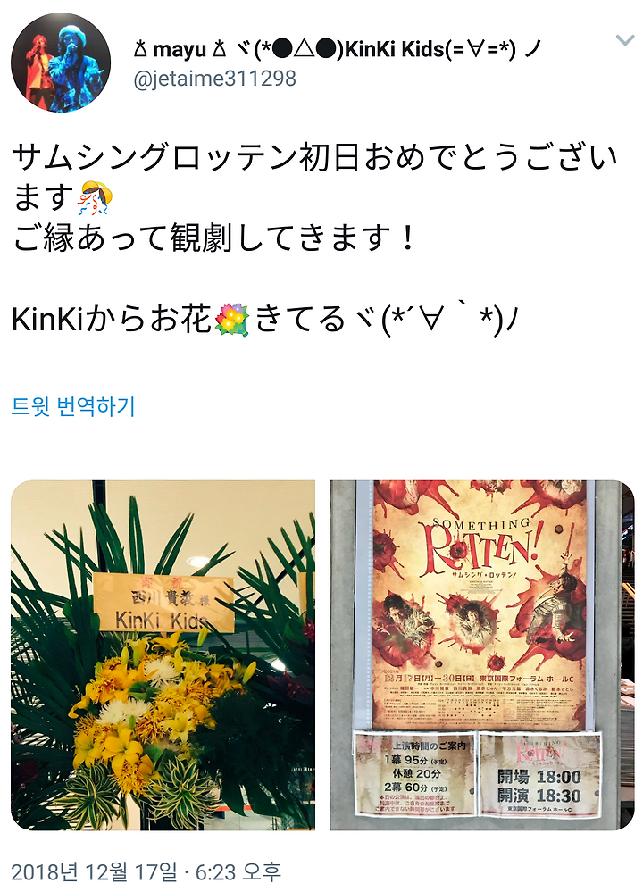 [KinKi Kids] 12/17 니시카와 타카노리상 무대「SOMETHING ROTTEN!」화환
