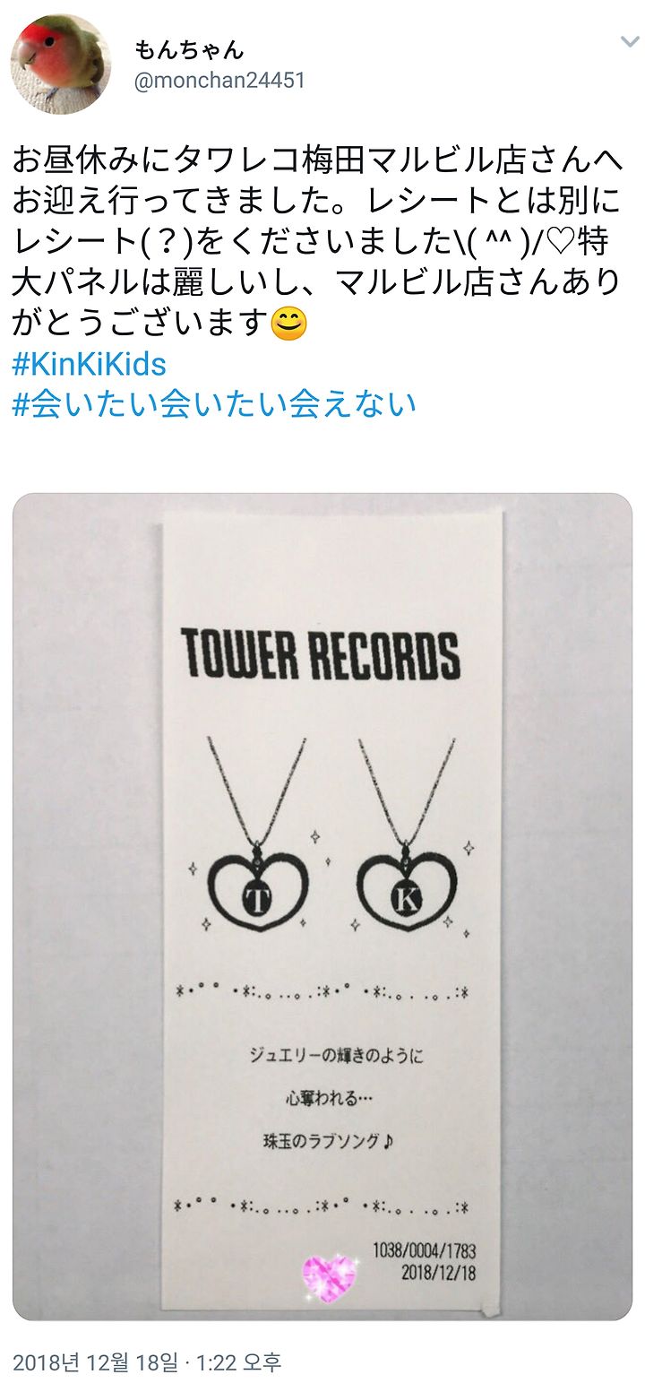 [KinKi Kids] 会いたい、会いたい、会えない。시부야 츠타야 트리 & 타워레코드 영수증