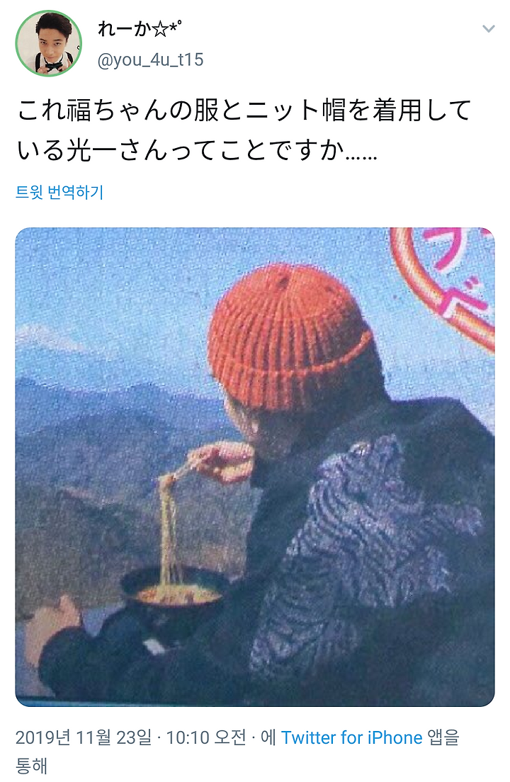이거 후쿠짱의 옷과 니트모자를 착용하고 있는 코이치상이라는 것입니다만