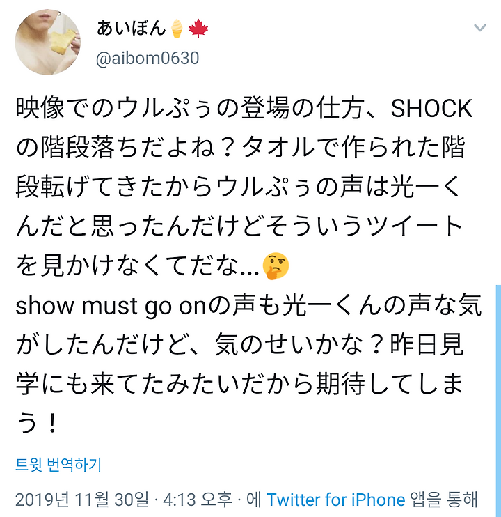 show must go on의 목소리도 코이치군의 목소리인 것 같은데, 기분 탓일까? 어제 견학도 왔었던 것 같으니 기대가 된다!