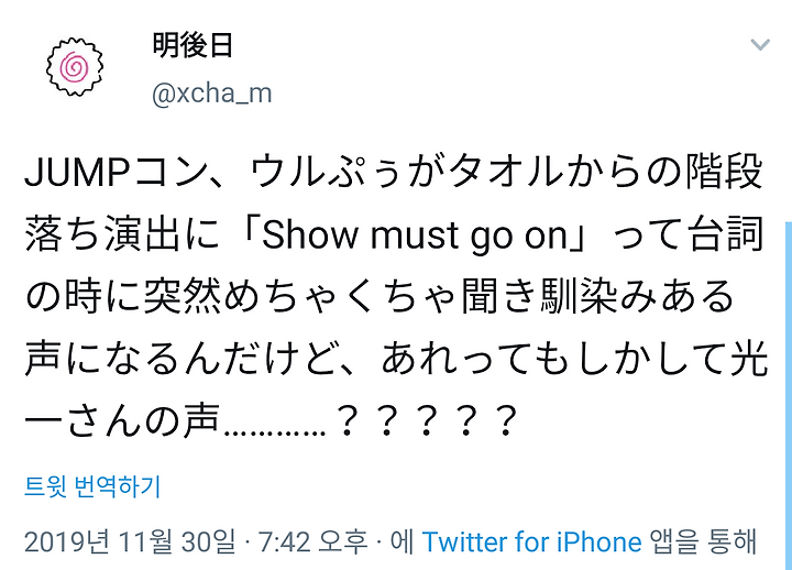 JUMP콘, 울푸가 수건 다음 계단 낙하 연출에 "Show must go on"이라는 대사 때 갑자기 엄청나게 익숙한 목소리가 되는데, 그건 혹시 코이치씨의 목소리....????