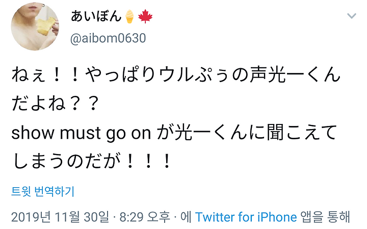 있지!! 역시 울푸의 목소리가 코이치군이지? show must go on 이 코이치군으로 들려버리는데!!!