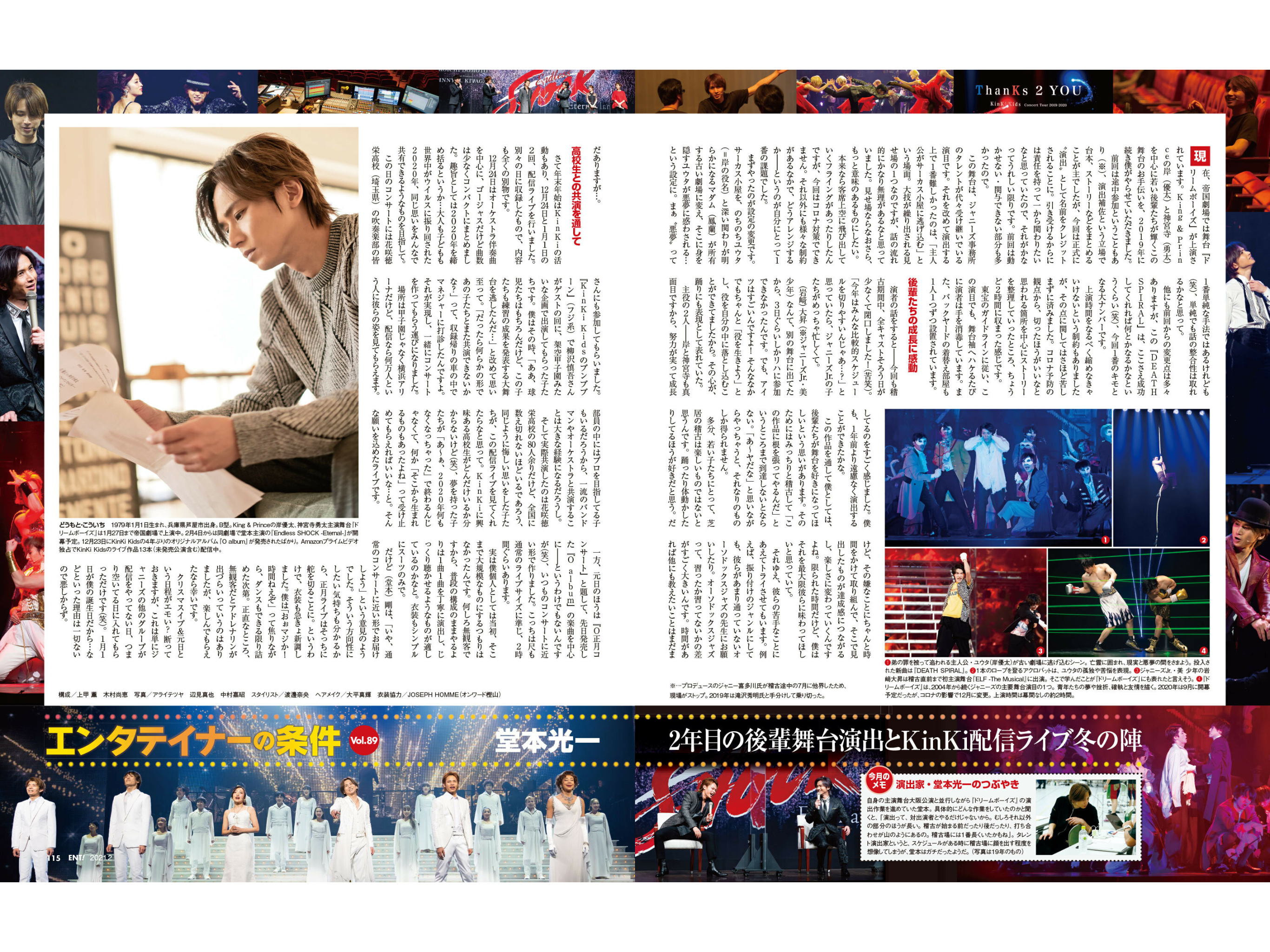 자신의 주연 무대 오사카 공연과 병행하면서 「드림 보이즈」의 연출 작업을 진행하고 있던 도모토. 구체적으로 어떤 작업을 하고 있었던 것인지 물으니, 「연출이란, 출연자에 대한 것만이 아니니까. 오히려 그 이외의 부분 쪽이 깁니다. 연습이 시작되기 전이나 후나. 협의할게 산 처럼 많다구요. 연습장에는 가장 오래 있었던 것일지도요.」 탤런트 연출가라고 하면 스케쥴이 있을 때 연습장에 얼굴을 드러내는 정도를 상상해버리지만, 도모토는 진심이었던 것 같다. (사진은 19년)
